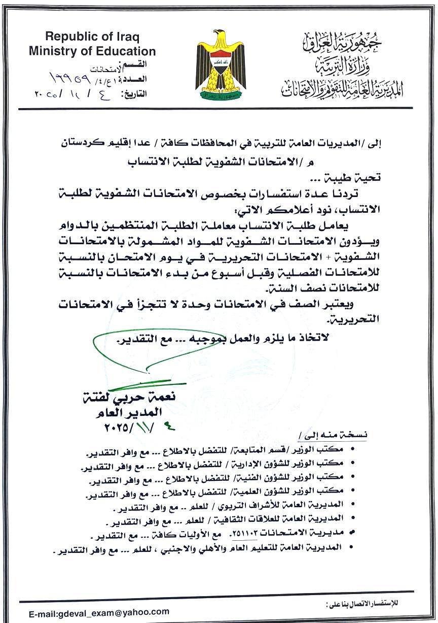 التربية توضح آلية اداء الامتحانات الشفوية بالنسبة لطلبة الانتساب