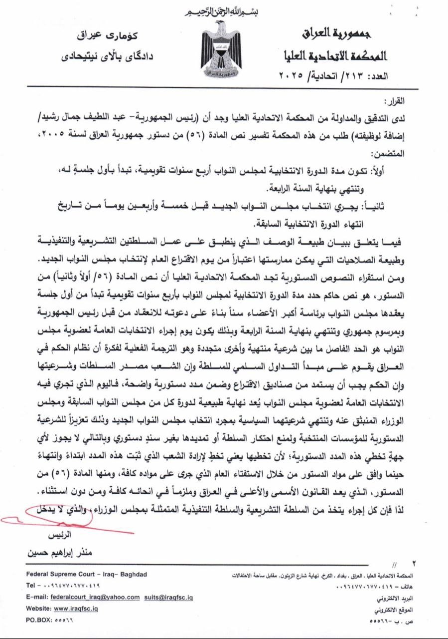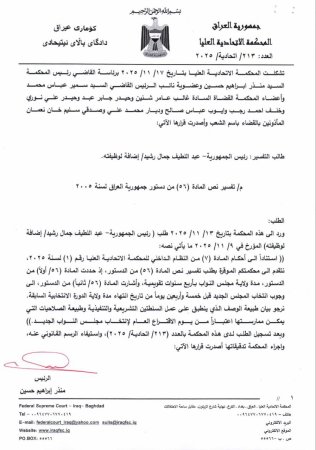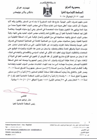المحكمة الاتحادية تقرر إنهاء أعمال البرلمان وتحويل الحكومة إلى تصريف أعمال